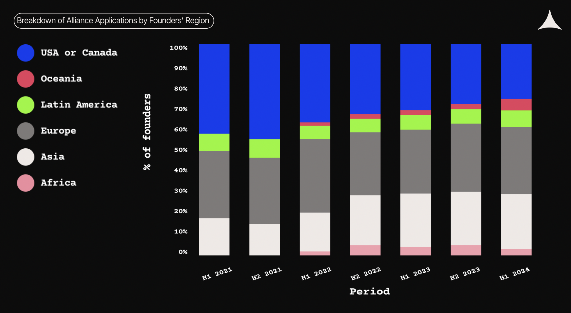 Indeed, the accelerator has seen a steady uptick in interest from Asia, which made up 24% of all applications in H1 2024, compared to 14% in H2 2021.