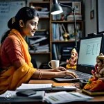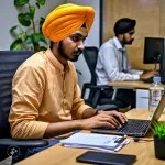 We also tried generating two images with similar prompts. Here are some examples: An Indian coder in an office.