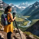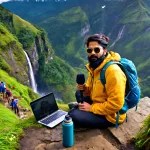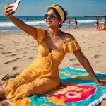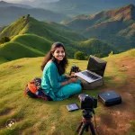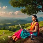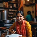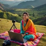 Another prompt we tried was “Indian content creator,” and it generated an image of a female creator repeatedly. In the gallery bellow, we have included images with a content creator on a beach, a hill, mountain, a zoo, a restaurant and a shoe store.