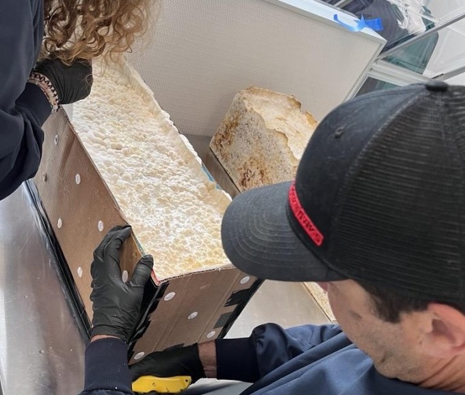Once a cycle is complete, Mycocycle kills the fungi to ensure they don’t keep growing. “We don’t want to put mold back into our building,” Rodriguez said. The end result is a product that can be sold, rather than waste that costs money to dispose of.