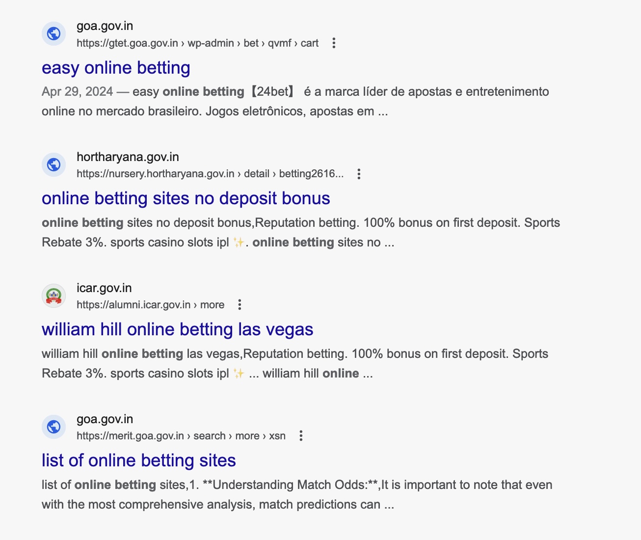 TechCrunch discovered around four dozen “gov.in” website links associated with Indian states, including Bihar, Goa, Karnataka, Kerala, Mizoram and Telangana that were redirecting to online betting platforms. Some of those websites belong to state police and property tax departments in the respective states. The scammy links were indexed by search engines, including Google, making the ads easy to find online.