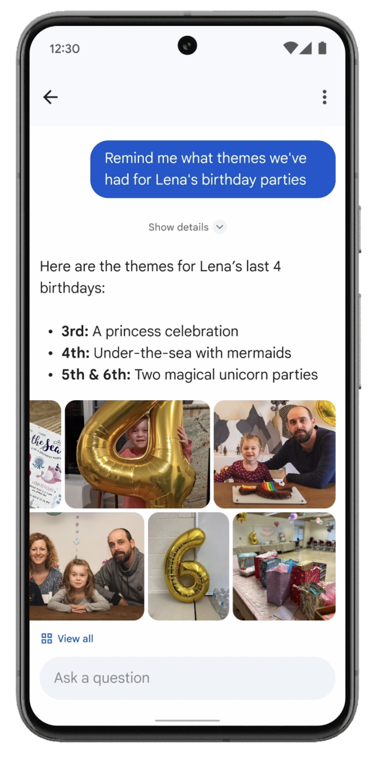 This type of query is made possible because Google Photos doesn’t just understand the keywords you’ve entered but also the natural language concepts, like “themed birthday party.” It can also take advantage of the AI’s multimodal abilities to understand if there’s text in a photo that may be relevant to the query.