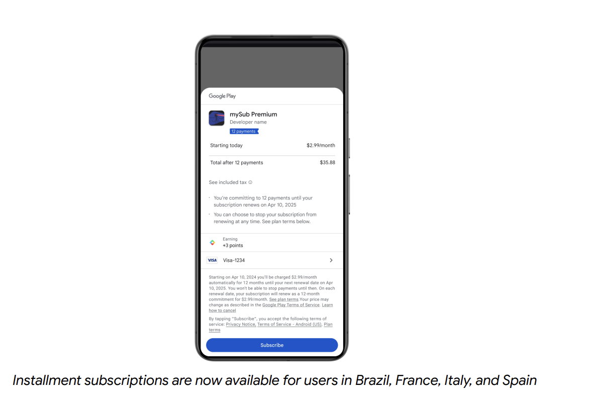 Its installment subscriptions feature, which has been in early access in select markets, allows customers the ability to pay over time for long-term subscriptions. So far, the program has seen an increase of 8% in total subscription sign-ups and 4% in user spending, but Google didn’t say when it would roll out more broadly.