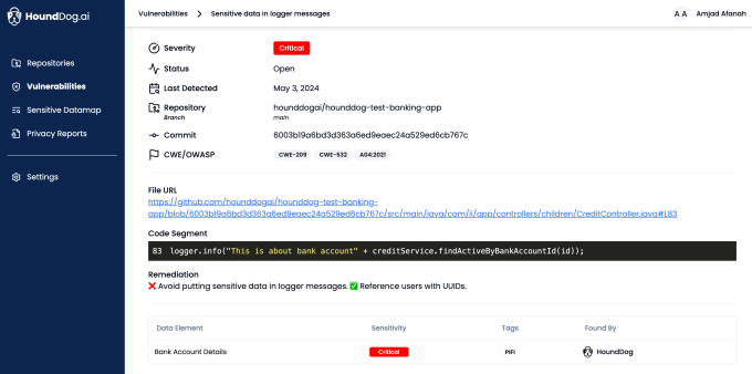 HoundDog was founded by Amjad Afanah, who previously co-founded DCHQ, which was later acquired by Gridstore (which, to complicate things, then changed its name to HyperGrid) in 2016. Afanah also co-founded apisec.ai, which is still up and running, and worked at self-driving startup Cruise. The inspiration for HoundDog came during his time at data security startup Cyral and talking to privacy teams there, he told me.