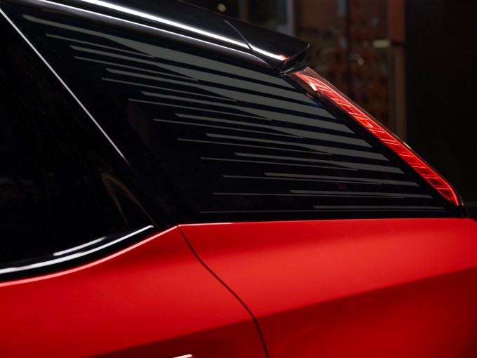 Designers added some cool texture to the rear quarter-panel window by printing a series horizontal design lines on two panes of glass and laminating them together. The effect echoes the look of the LED taillamps and brings some interesting visual dynamics to the rear of the vehicle.