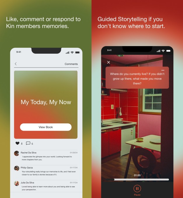 If a family member is unsure about what to add to their family’s Storybook, they can use the app’s “Guided Storytelling” feature to receive prompts that they can answer. For instance, the app may ask you to talk about your current home and what made you move there. Alvarez says that while many people want to capture their stories, they may be unsure about where to start, which is why the startup added the Guided Storytelling feature. Kinnect plans to use AI in the future to personalize these prompts to each family member in a group.