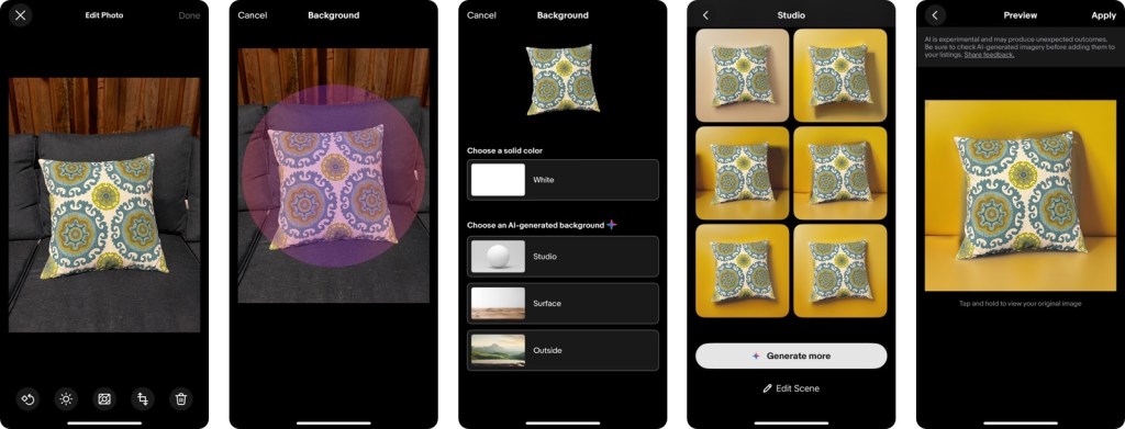 eBay’s newest AI feature allows sellers to replace image backgrounds with AI-generated backdrops. The tool is now available for iOS users in the U.S., U.K., and Germany. It’ll gradually roll out to Android users over the coming months.