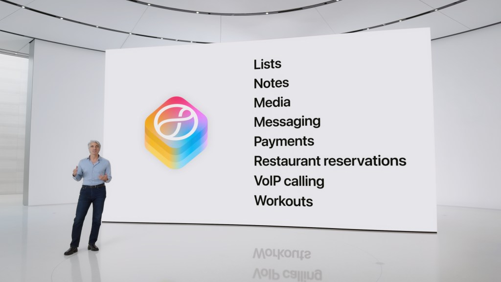 Meanwhile, Apple’s App Intents framework will also gain access to Apple Intelligence. Apple is defining new intents and making them available to developers across categories starting with a subset of categories including Books, Browsers, Cameras, Document Readers, File Management, Journals, Mail, Photos, Presentations, Spreadsheets, Whiteboards and Word Processors.