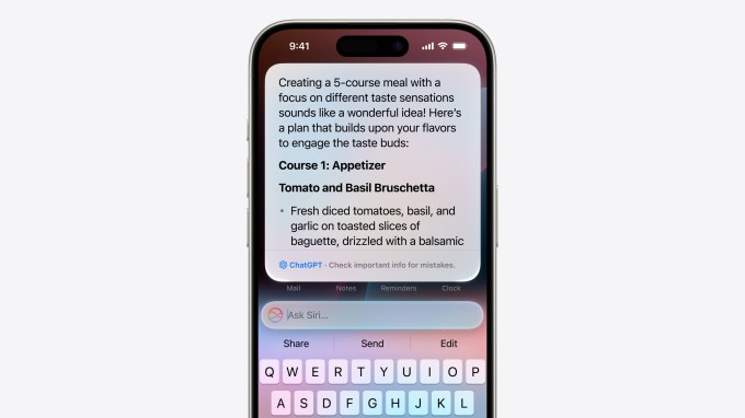 As expected, Apple also announced a partnership with OpenAI that brings ChatGPT to offerings like Siri. The GPT 4.0-powered feature utilizes that company’s image and text generation. The offering will give users access without having to sign up for an account or pay a fee (though they can still upgrade to premium).