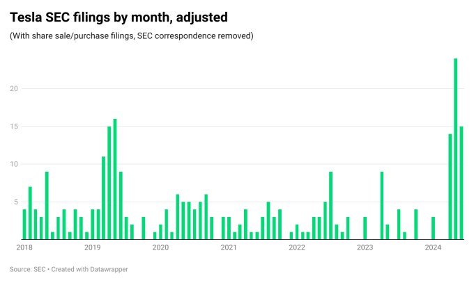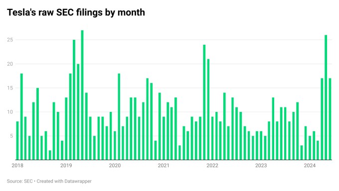 In terms of just raw filings, Tesla has submitted more to the SEC in the last three months than it has at any point in the last five years: