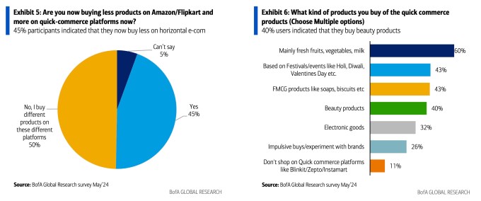 Zepto, Blinkit and Swiggy’s Instamart are increasingly expanding beyond the grocery category, selling a variety of items, including clothing, toys, jewelry, skincare products and electronics. A TechCrunch analysis finds that the majority of items listed by Amazon India in its bestsellers list are available on quick commerce platforms.