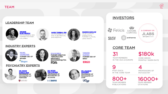 The Feel Therapeutics team has put together what looks like an impressive (if ugly) team slide, but let’s dive into the details to see how it holds up. First off, help investors understand why this team is the right team to lead this company. You’ve got some big names and titles thrown around, but what exactly makes them the perfect fit to drive this startup to success?