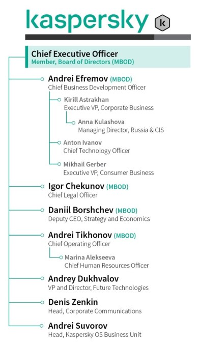 The list of sanctioned individuals includes several Kaspersky board members, including Andrei Anatolyevich Efremov, who is also Kaspersky’s chief business development officer, and Igor Gennadyevich Chekunov, who serves as the company’s chief legal officer.