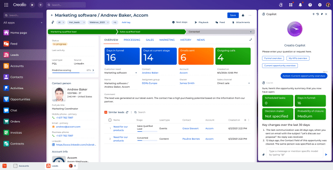 And, of course, because this is 2024, Creatio, too, is riding the AI wave with a copilot for its CRM users and no-code creators. “Right now, what we’re hearing from people more and more is that cloud technology built back in the beginning of the 2000s, like Salesforce, is considered more like legacy tech. Everyone is looking for new technology, cutting-edge technology — and this is exactly what Creatio delivers with our AI, no-code architectures.”