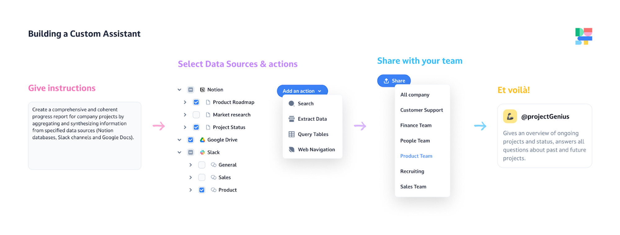 Instead of reinventing the wheel, Dust focuses on building a product that works for everyone. A couple of years after the launch of ChatGPT, most people are now familiar with AI assistants (many are even using it for work even though its against company policies). They know how to start a conversation, follow up with more details and ask the AI assistant to reframe its answer.