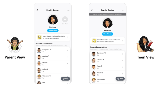 Snapchat offers parents access to a “Family Center” that lets them monitor some of their teen’s activity on the app. Parents have to create their own Snapchat accounts and then connect it with their teen’s.