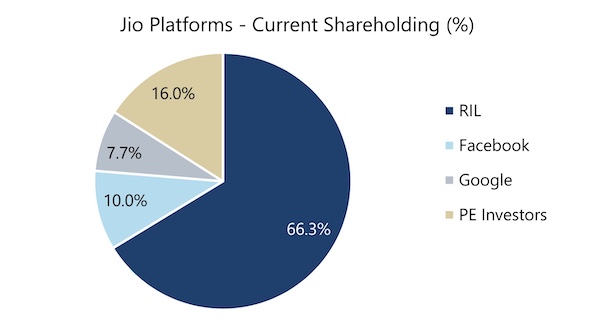 Jio, which serves more than 475 million wireless subscribers, raised about $20 billion in 2020 from investors, including Meta, Google, General Atlantic, KKR, Silver Lake, Mubadala, TPG, Abu Dhabi Investment Authority, and Intel and Qualcomm. Jio was valued at $58 billion pre-money during the 2020 investments. Airtel, Jio’s chief rival in India, has a market cap of nearly $98 billion. Bank of America gave Jio a valuation of $107 billion last year.