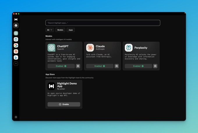 Highlight is trying to make this happen for the desktop. In the current iteration, the app lives as a floating button on your desktop. Whenever you hover over the icon, it captures the content on the screen and passes it as context to different models. You can choose to ask other questions using different tools such as ChatGPT, Anthropic’s Claude, Perplexity and more.