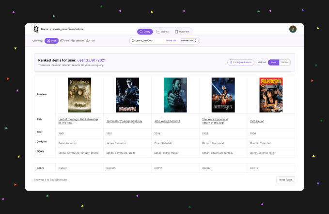 Currently, the service can pull in data from a wide variety of sources, ranging from data warehouses like Databricks, Google’s BigQuery and Snowflake, to PostgreSQL, MySQL and MongoDB databases, as well as services like Amplitude, Segment, Google Analytics and Mixpanel. Having all of this data — and critically a lot of user interaction data — is what allows developers to build their custom recommendation systems.