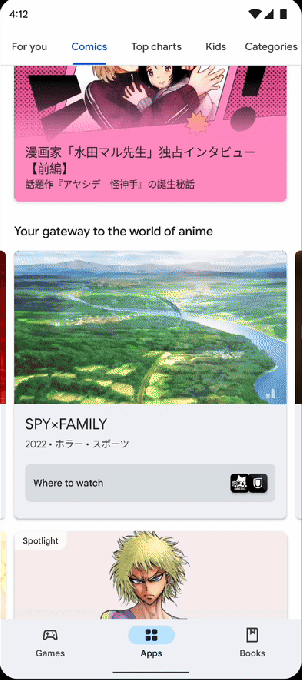 Google partnered with top providers, such as “Attack on Titan” publisher Kodansha. Users can preview samples directly in the app store, allowing them to read comics without having to download apps. Additionally, the Comics tab features manga- and anime-related livestreams at the top of the page, as well as trailers featuring upcoming titles, editor picks, and expert reviews.