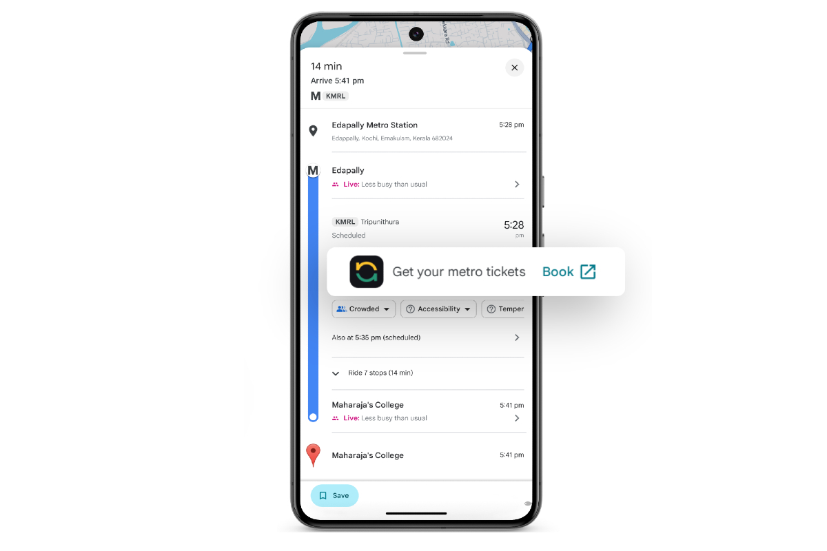 This week, the company is rolling out support for booking metro tickets in Kochi and Chennai from within Google Maps. Users will get their tickets as a QR code after they pay for it. Google said it would bring this feature to more cities and support additional modes of transport eventually.