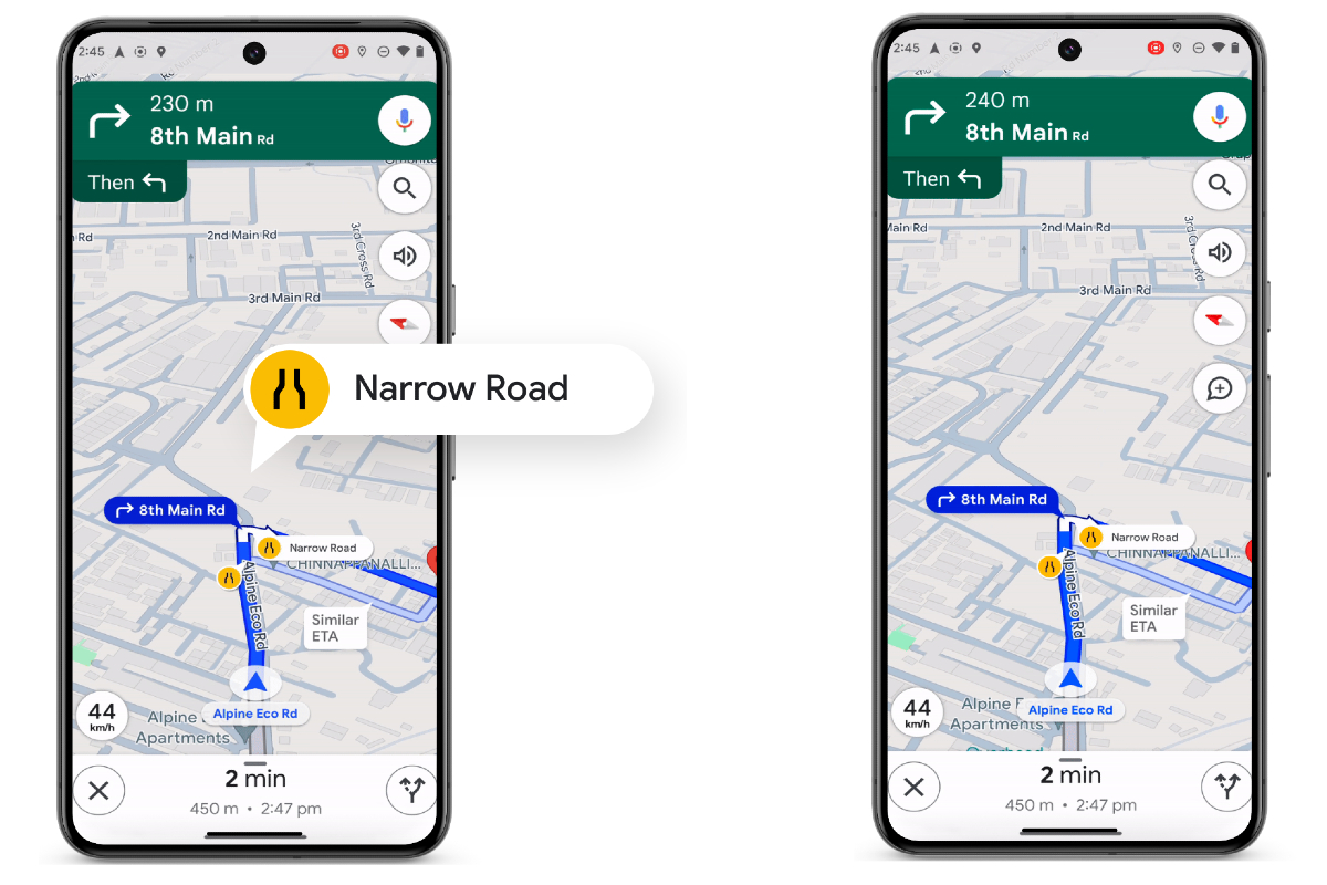 On Thursday, Google said it has built an AI model specifically for Indian roads that estimates road width using satellite imagery and Street View data. The model also considers information such as the type of road, distance between buildings, tree cover, poles and drains to help drivers avoid narrow roads.