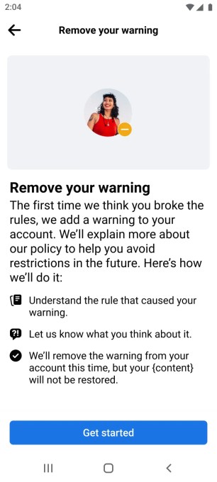 Typically, Facebook doles out penalties to users who break its rules, including throwing users into “Facebook jail” — a term that refers to their temporarily limited abilities to post and interact on the platform following a violation. Last year, Facebook introduced changes to this process, doling out more warnings before penalty actions were taken. Now, the company is making it possible to remove those initial warnings, too.