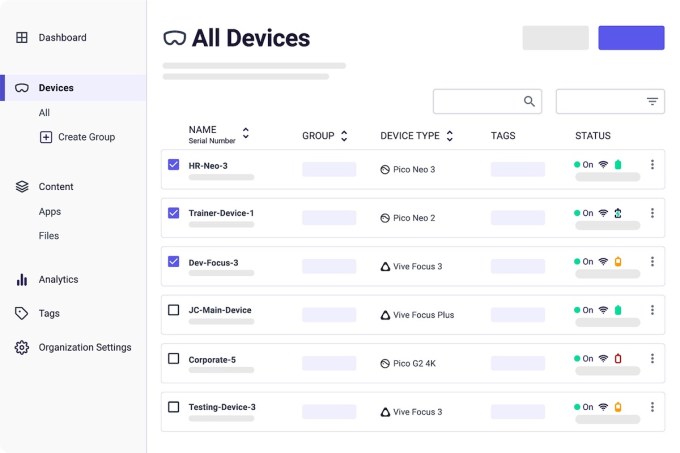 ArborXR provides a platform for companies to remotely manage AR and VR devices, install apps and content, and control user access within the headset. Managers can set up devices through ArborXR’s web app (available on Windows and Mac devices), then monitor training progress in real time, guide employees through virtual experiences, control user settings, limit access, trigger updates, see device health like battery and storage and more.