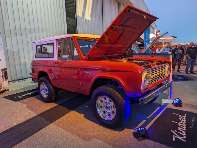 Kindred Motorworks brought its first all-electric Bronco to the events in and around Pebble Beach, and according to Howard, it brought considerable attention to the four-year-old restomod company. Kindred showed off an EV restomod, a restored 1960s-era Bronco, powered by two motors and an 80kWh battery pack at Motorlux, and shuttled attendees to the events at The Quail Lodge on Friday. The Bronco EV is the first fully electric Kindred vehicle that will be delivered to customers.