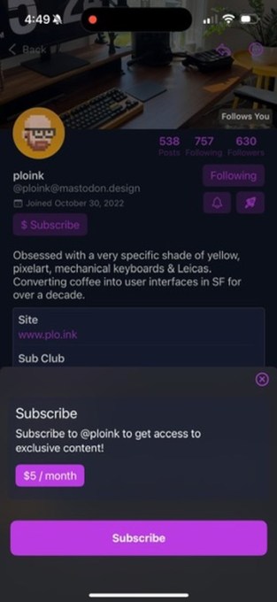 “I’m very happy that I can help with the creator economy over the Mastodon and the fediverse by expanding Ice Cubes features,” Ricouard told TechCrunch. “And we believe sub.club will help fund various creators and services over the fediverse, as it’s much needed.”