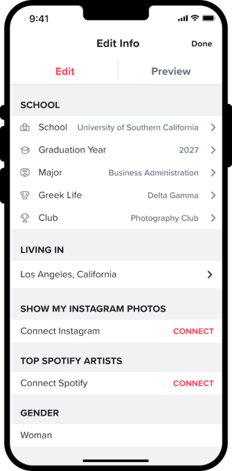 For the college students who are satisfied with dating apps, which may not be many, Tinder announced Wednesday a series of updates to Tinder U, its in-app feature that caters to current college students ages 18 to 24. This includes new badges to add to their profiles, such as graduation year, major, clubs and Greek life. Other smaller updates include more simplified enrollment for students and an exclusive Tinder U app icon for iOS users.