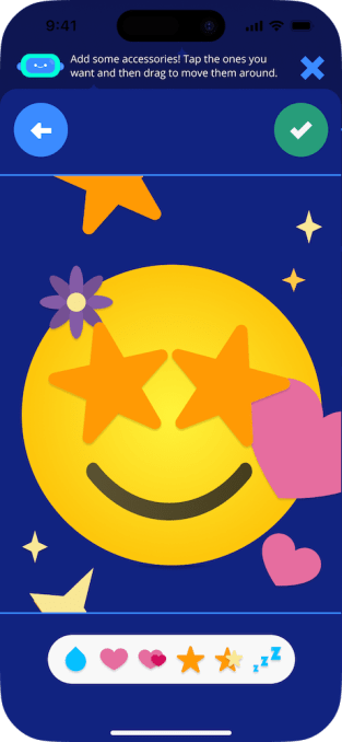 Kinsome offers a variety of features to keep kids engaged, including warm-up activities, icebreakers and other interactive games. For example, “Emoji Chronicles” encourages kids to describe their day using emojis, and Kinzey guesses their answers while asking questions to learn more. For instance, if the child uses a dog emoji, Kinzey might ask, “Tell me more about the dog,” and they can then respond with a voice recording.