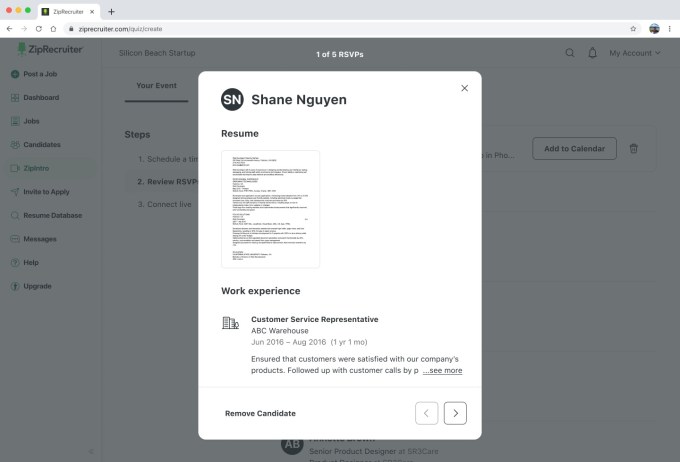 “With ZipIntro, recruiters and hiring managers can forge those critical connections faster to assess the true potential of each candidate,” Megan Allen, SVP of product at ZipRecruiter said in a statement. “For job seekers, we’re excited to provide them with the opportunity to speak with an employer faster, allowing them to showcase their true personality, soft skills, and passion.”