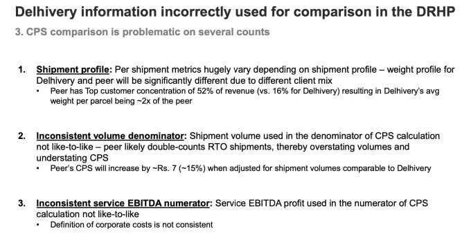 Delhivery has also questioned Ecom Express’ presentation of service EBITDA and corporate costs, citing a lack of consistent definitions for these metrics in the prospectus.