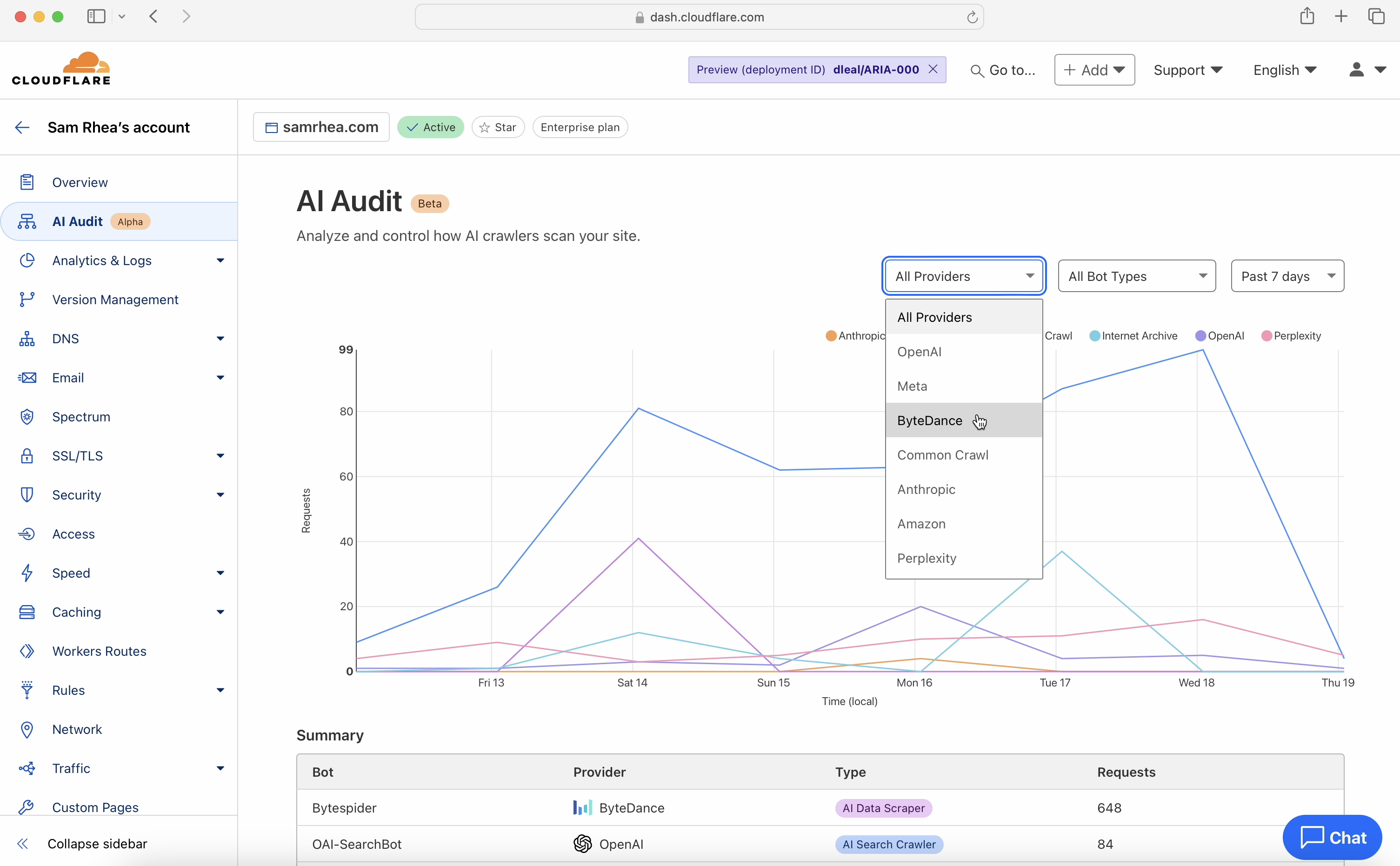 A demo of AI Audit shared with TechCrunch showed how website owners can use the tool, which is able to see where each scraper that visits your site comes from, and offers selective windows to see how many times scrapers from OpenAI, Meta, Amazon, and other AI model providers are visiting your site.