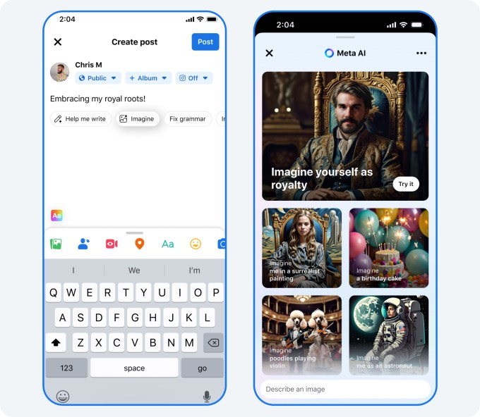 Meta AI’s Imagine features, which use generative AI to turn text prompts into images, are now being expanded across Facebook and Instagram, the company announced at Meta Connect 2024 on Wednesday. With the update, users will be able to use prompts to generate AI photos directly in their feed, Stories, and for their Facebook profile pictures.