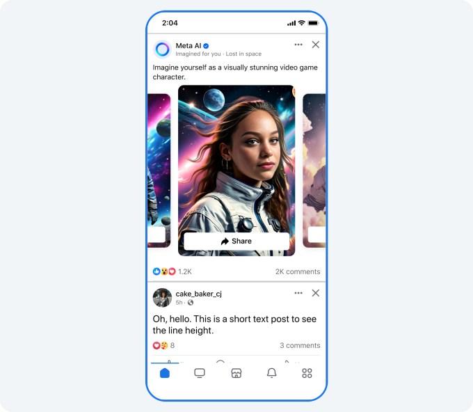 Meta says it’s also testing new AI-generated content in Facebook and Instagram feeds where it will display AI images created for users based on interests and trends.