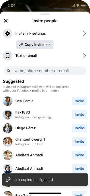 Users will also be able to invite Instagram followers to events created on Facebook, as well as via SMS and email invites to those who have not registered an account on the site.
