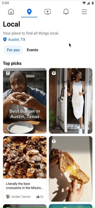 In addition to the Local tab, a user’s local community will be highlighted in other ways on Facebook. A new, swipeable section will appear in the user’s Facebook Feed (formerly, News Feed) which will showcase interesting posts and information from the area. This may include things like local events, local Facebook Groups, notable people or businesses, items for sale on Marketplace, and more.