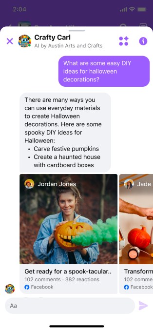 A new AI feature is coming to Facebook Groups, too. The “Group AI” offering will help members of groups find answers to questions — including those that have previously been asked. This addresses one of the bigger headaches for Group admins, who find that new people joining the group typically ask the same questions again and again. The feature will have to be enabled by a Group’s admin, which then introduces a chat-like interface where Group members can ask questions and be linked to relevant group posts. The test is currently rolling out in the U.S. and Canada.