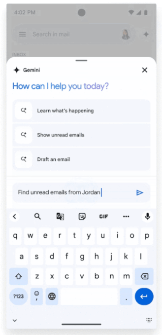 The feature can help you answer specific questions about your emails, such as, “How much did the company spend on the last marketing event?” You can ask Gemini to show you unread messages from a specific sender and summarize emails about a topic in your inbox. For instance, you can state things like “Catch me up on the emails about quarterly planning.”