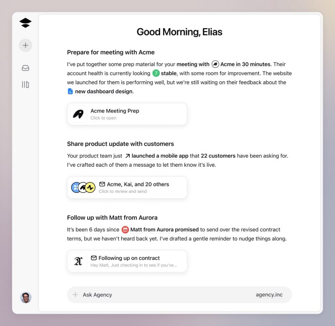 The idea for Agency was born when Torres started consulting for OpenAI in early 2023. The ChatGPT maker asked Torres for help developing AI solutions for some of its enterprise customers, including the NBA and Live Nation. In the course of doing that, it occurred to Torres that companies could benefit from AI customer success managers.