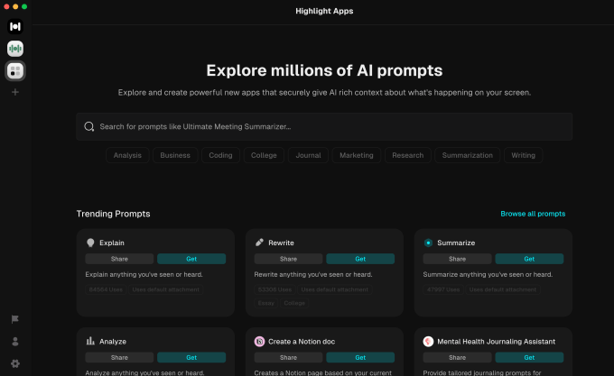 In July, the company had opened its platform for developers to build apps on top of Highlight. However, the startup realized that this approach would limit custom actions to a handful of developers. With the latest version, the company will allow users to prompt their way to a custom action like summarizing the first 10 minutes of a meeting. Highlight also wants to open up prompts to the community of users, helping one person discover a useful automation someone has created.