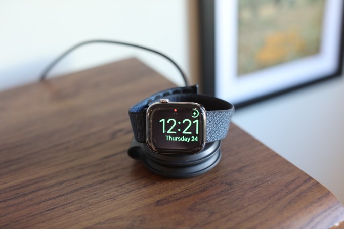 If you need an additional option, the charger’s exterior sides also magnetically snap together, allowing you to charge both the phone and watch on their sides. This may well be the best configuration of the bunch, as it pulls up the iPhone’s Standby mode, thus replacing the need for a bedside alarm: