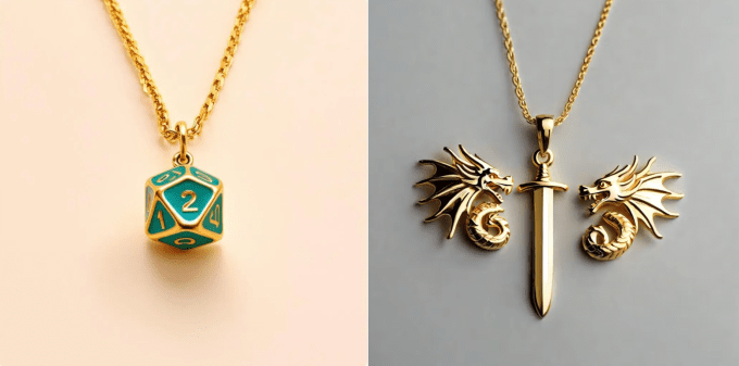 Not all the results generated were up to standard, however, and I ran into some hurdles along the way. For example, the AI generator had a hard time adding multiple charms to one necklace. It also failed to create complex objects like a 20-sided die.