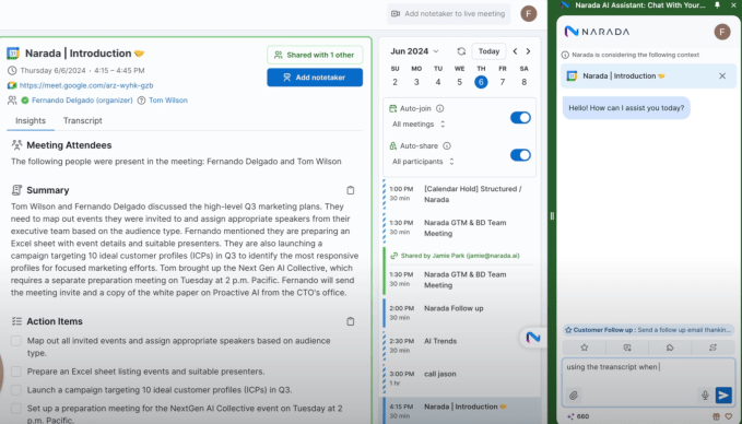 Like any “smart assistant” or helper app like this, you have to trust not just the tech, but the company itself — that Narada won’t abuse your data, or your company’s data. That said, the company promises to not train its AI models on any customer data.