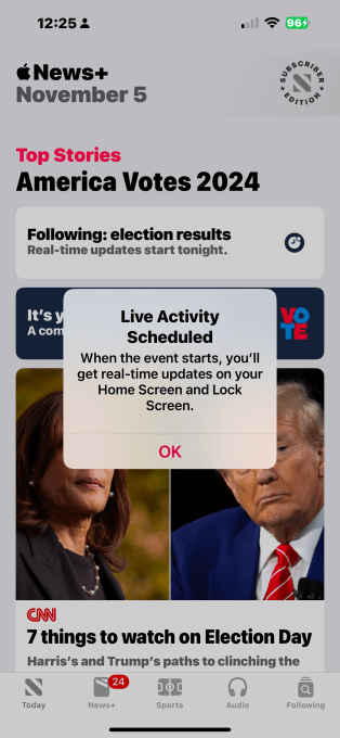 It’s Election Day in the U.S., which means you’re likely glued to the latest news about which presidential candidate is currently in the lead. To help with this, Apple has released a Live Activities widget within its Apple News app that will offer real-time election updates directly on your iPhone or iPad’s Home Screen and Lock Screen.