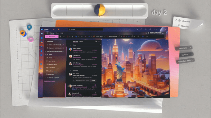 “If you’ve enabled location permissions in Outlook, the My Location theme will bring you imagery uniquely inspired by your locale, dynamically updating for you as you head out the door on a trip or vacation,” Microsoft wrote in the blog post. “Similarly, a dynamic theme based on the weather would be updated to reflect the current weather conditions where you are.”