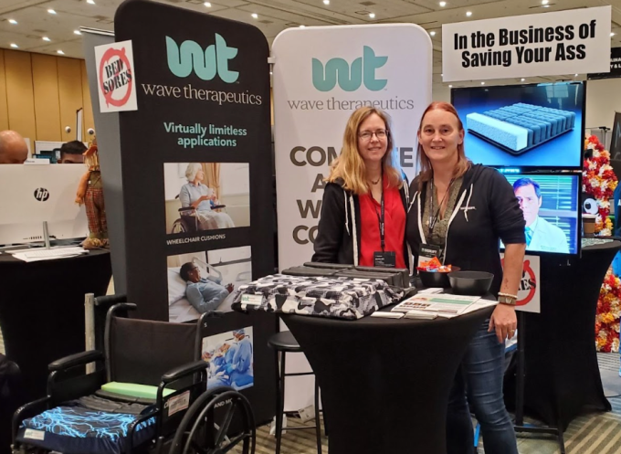 Cloneable.ai hand-built and painted a utility pole out of Styrofoam to demonstrate their innovations in safety inspection for utility workers. Wave Therapeutics used the clever sign “In the Business of Saving Your Ass” as a nod to their tech designed to prevent bedsores.