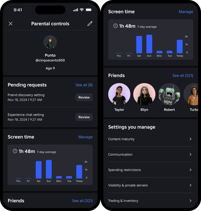 Parents can now also see their child’s average weekly screen time and set daily time limits. They can also see their child’s Friends list.